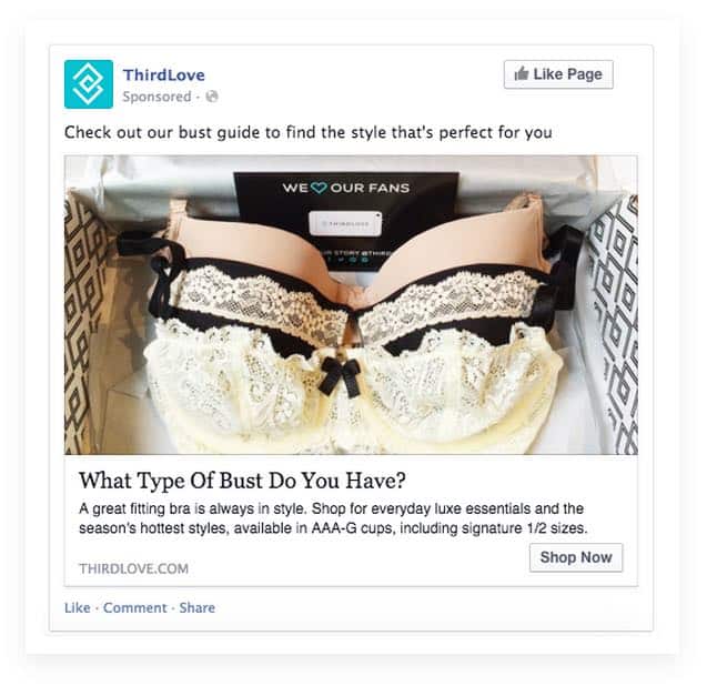 ThirdLove fick varken berätta om sin app, sina produkter eller om hur kvinnor väljer rätt behå. Facebook stängde ned företagets konto i april i år.