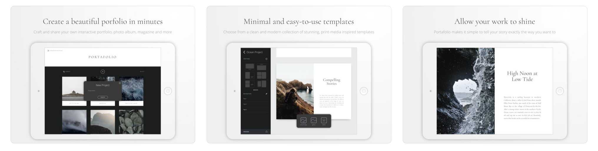 Portafolio är en app för att skapa fotoalbum med bilder och du kan välja mellan flera olika mallar.
