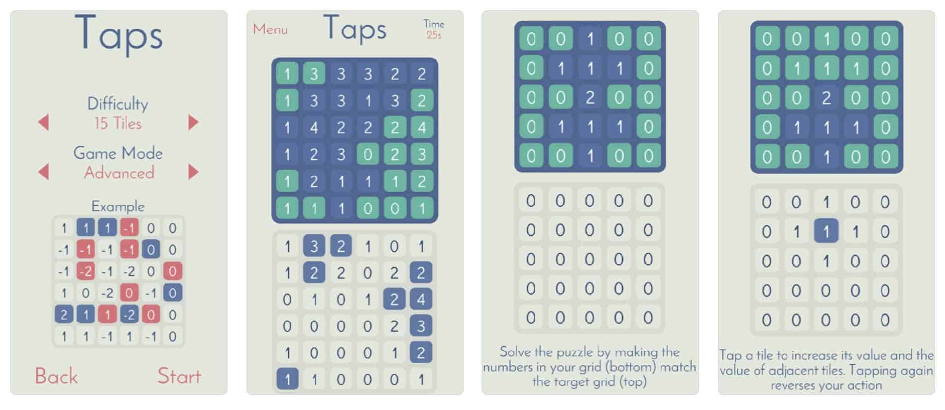 Taps är ett enkelt, smart och roligt spel. Enkelt i utförandet men inte enkelt för det. Det krävs logik och strategi för att lyckas.