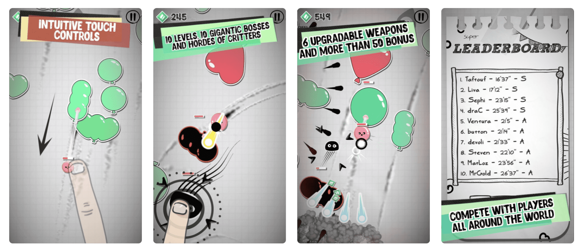 – Play 10 levels filled with 10 Gigantic bosses and hordes of hand painted, kid friendly, critters.