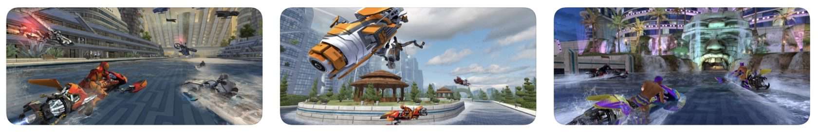 • Modern vattenracing – Riptide GP: Renegade tar dynamisk vattenracing till en ny nivå när det gäller spänning med hisnande vattenfysik, stänkande sprejeffekter och mycket mera! Varje tävling är unik eftersom ytan du tävlar på alltid förändras.