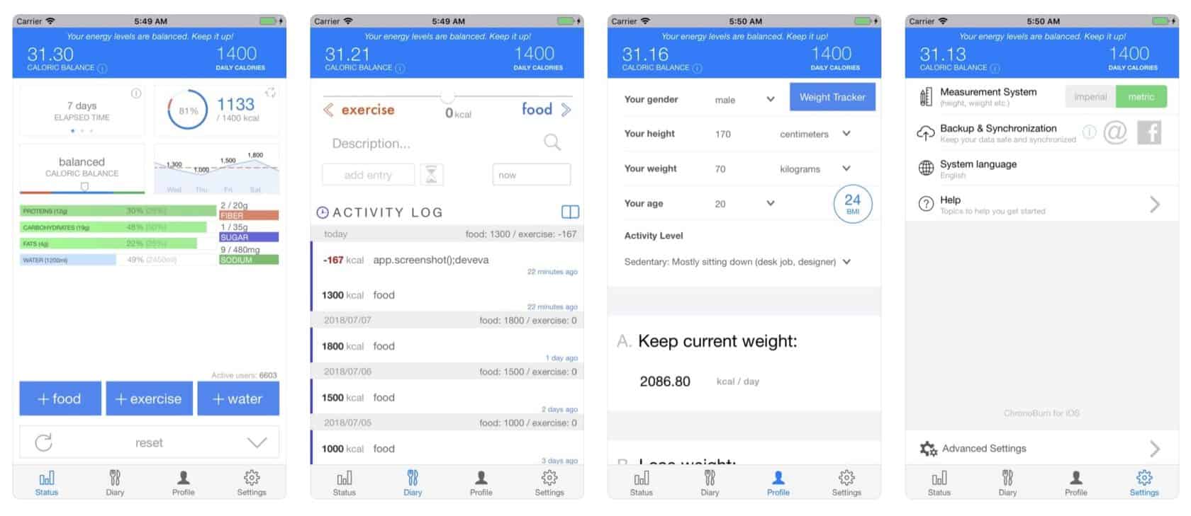 Ställ bara in ditt dagliga kaloriintag, slå start, och du är färdig att gå!