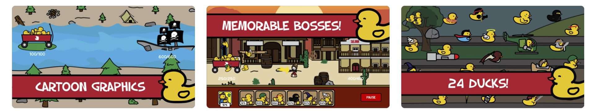• 24 ducks to unlock and fight with, each with unique attacks and animations