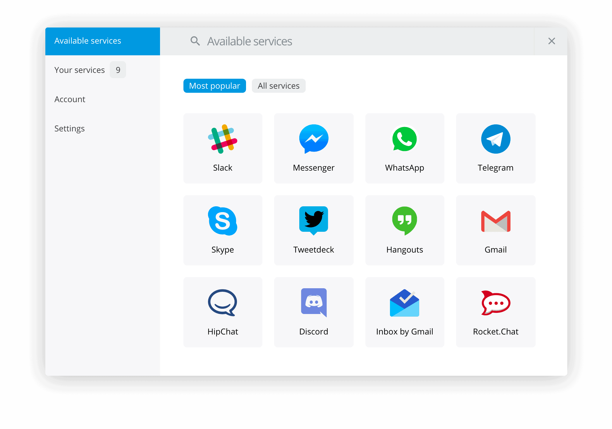 Franz är ett program för din Mac som du kan samla massor av tjänster i – ett enda program för alla dina tjänster.