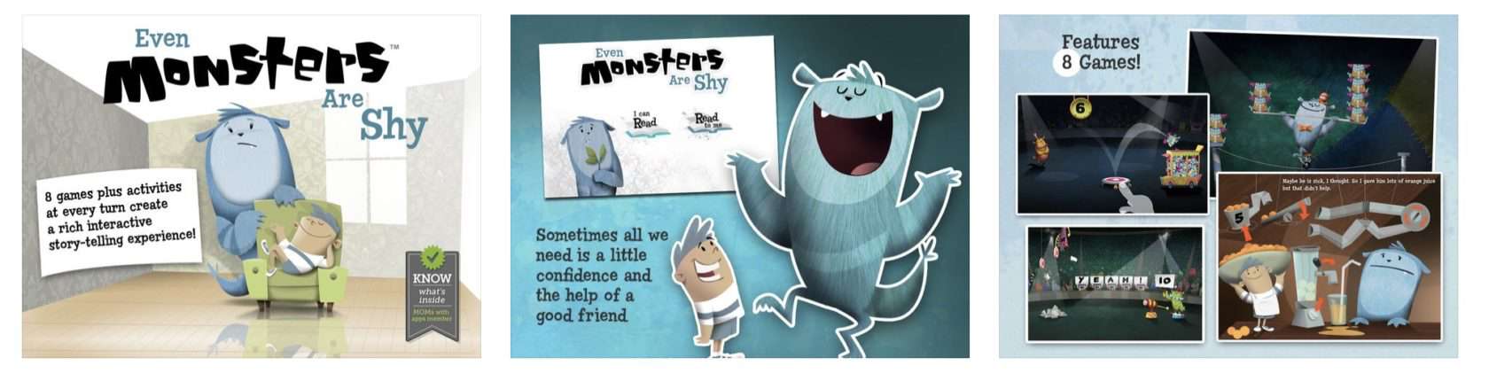 ”Even Monsters Are Shy” is part of the Even Monsters(TM) series that has been featured on USA Today, in the ”Best of” category on the iTunes store, won the Parents’ Choice Gold and Silver Awards, earned the Kirkus Reviews ”Best of” pick, and much more. The Even Monsters series helps kids overcome the daily challenges that every kid faces, through games and interactive storytelling.