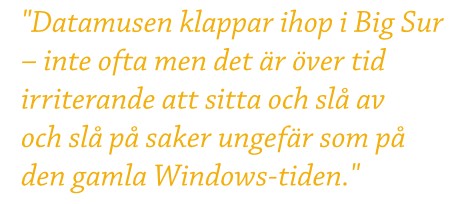 Datamusen klappar ihop i Big Sur – inte ofta men det är över tid irriterande att sitta och slå av och slå på saker ungefär som på den gamla Windows-tiden.