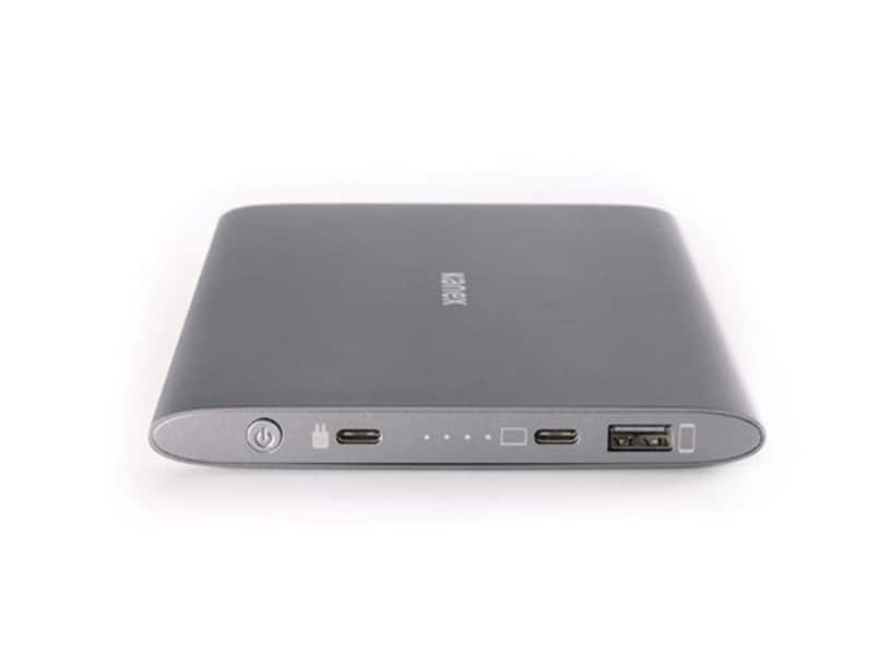 Kanex har ett batteri på 15,000 mAh som ger en full laddning för datorn och fler laddningar för din iPhone och iPad. Du får med en USB-C sladd och en laddningssladd i kartongen. Tillsammans med de 8-10 timmars batteritid som du har i datorn så har du alltså med dig 16-20 timmar vilket rimligen borde räcka för de allra flesta. Det är inget batteri som är tänkt för att du ska ha det med dig i fickan, om du inte har en extremt stor ficka då. Batteriet är tänkt att ha med sig i väskan. på resan.