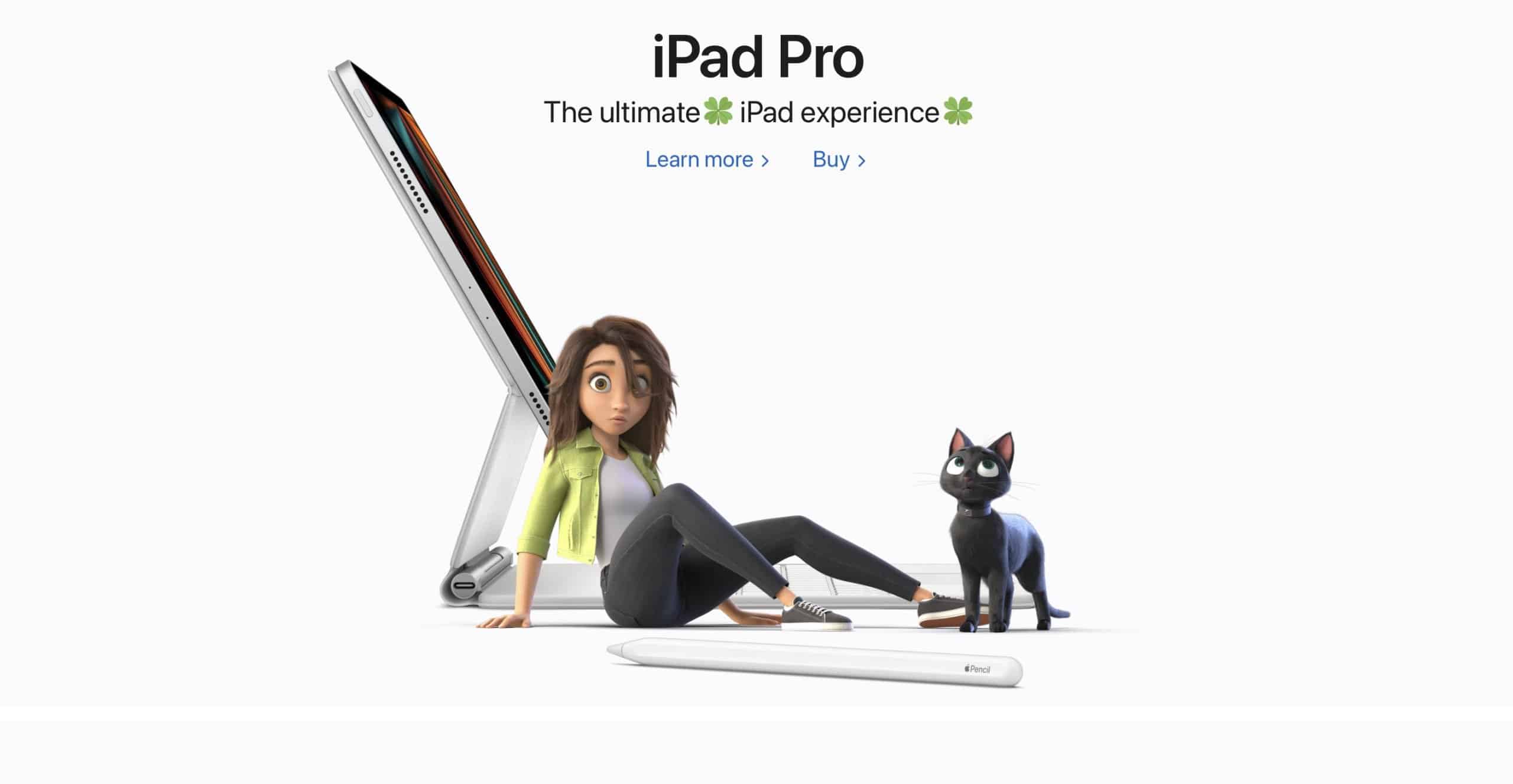Idag fredag så har den nya animerade (tecknade) filmen Luck premiär på AppleTV+ och det är något som märks, påtagligt, på Apples hemsida. Figurerna från filmen dyker upp överallt – hela hemsidan har kapats.