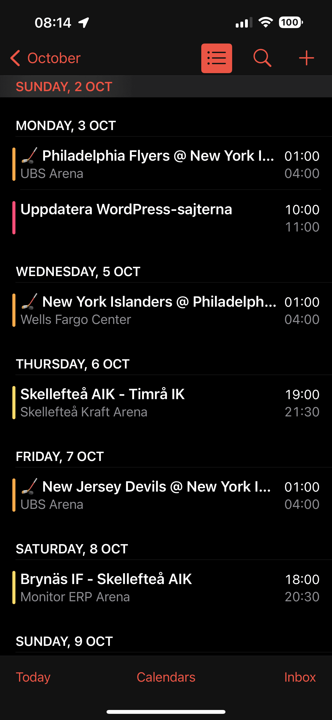 Du behöver alltså inte ha kalendervyn som en lista permanent – klicka på listikonen så får du upp allt i en lista och sen kan du klicka igen och få tillbaka dina vanliga vy.