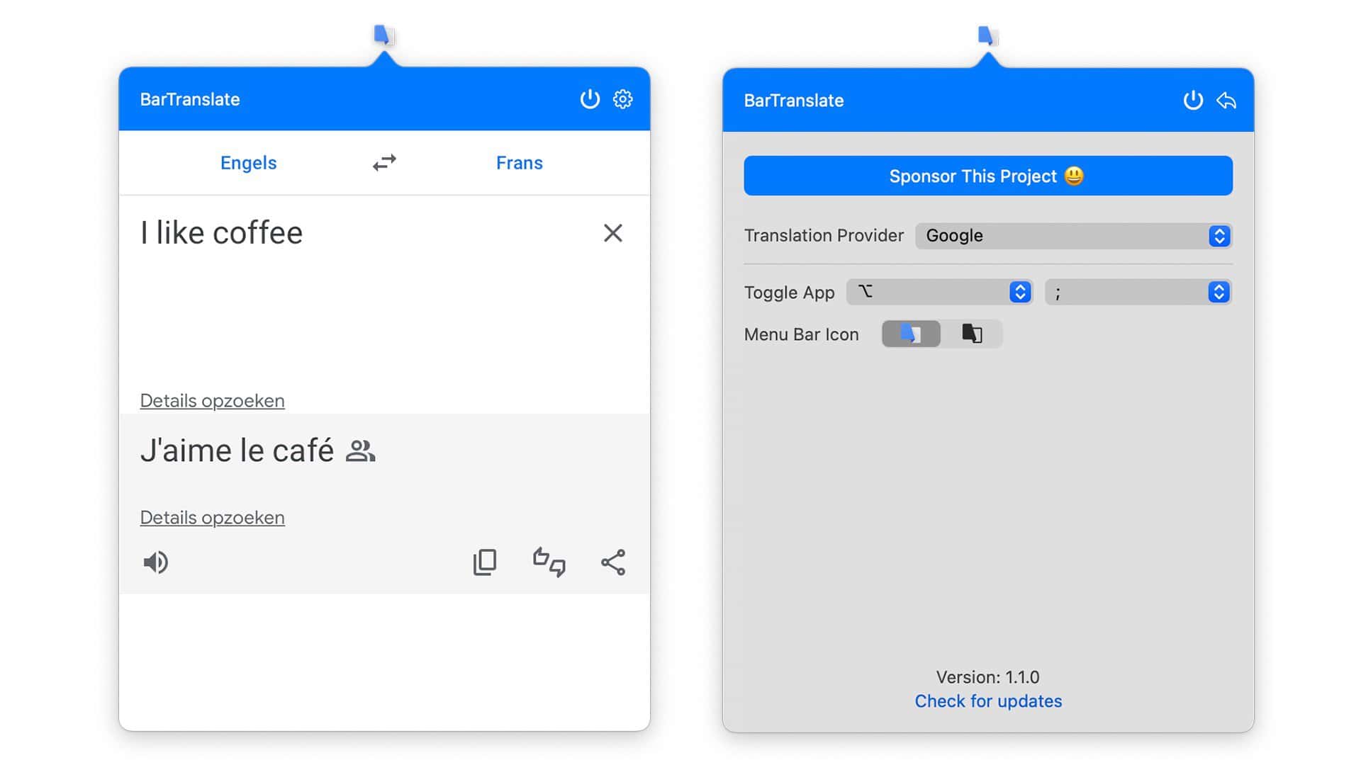 Inkluderat stöd för Google Translate och DeepL Translate.