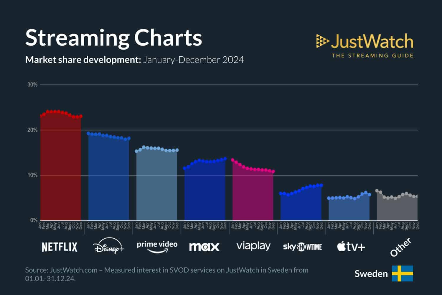 Uppåt för Netflix, Max, SkyHowTime och AppleTV+