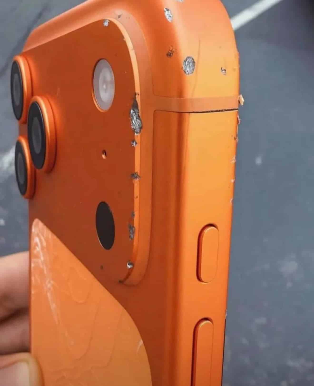 Det har förekommit uppgifter om att nya iPhone 17, speciellt den brandgula modellen, ska vara mycket känslig för repor och andra skador. Färgen och skalet i aluminium ska göra telefonen extra känslig har det sagts och som bevis har bilder på skadade iPhone 17, företrädesvis Pro-modellerna visats upp.