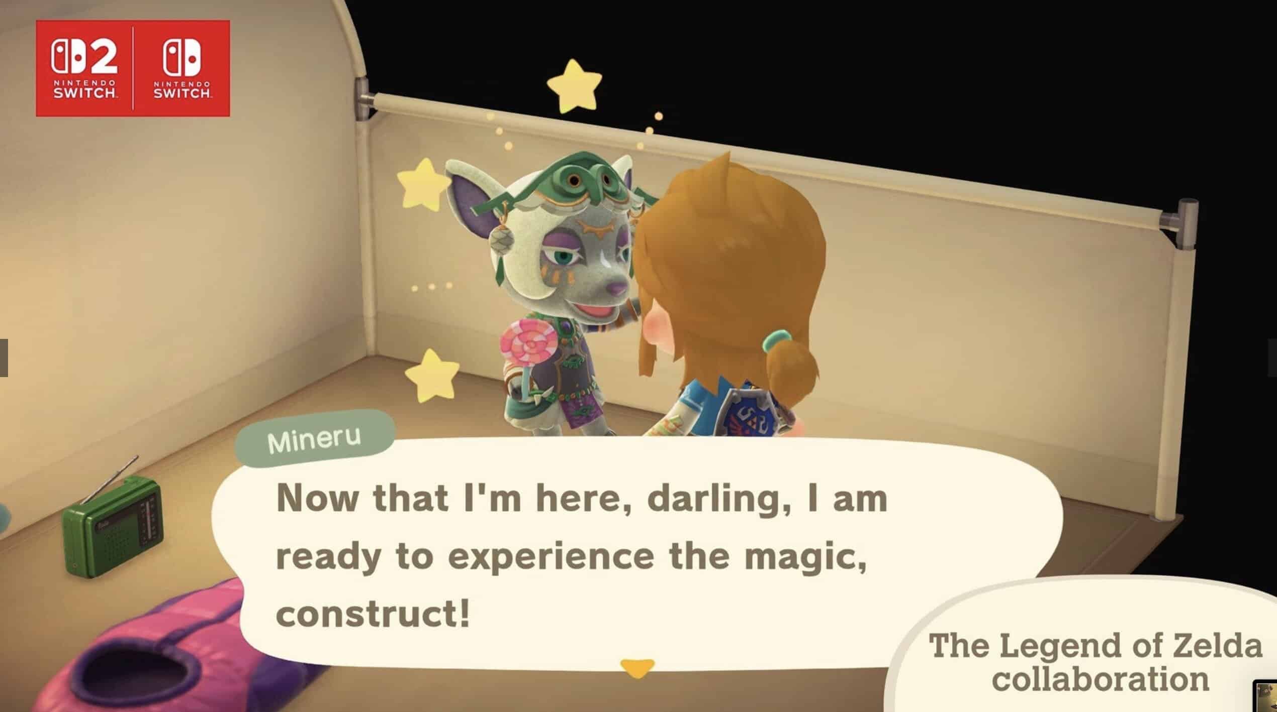 Ett annat samarbete sker med The Legend of Zelda. Den som använder kompatibla Zelda-amiibo får tillgång till exklusiva föremål och kläder, bland annat prydnader med motiv från Breath of the Wild, en inaktiv Guardian, Zonai-enheter, Majora’s Mask och den legendariska Master Sword. Tapeter och golv med skogstema hämtade från platsen där svärdet vilar ingår också.
