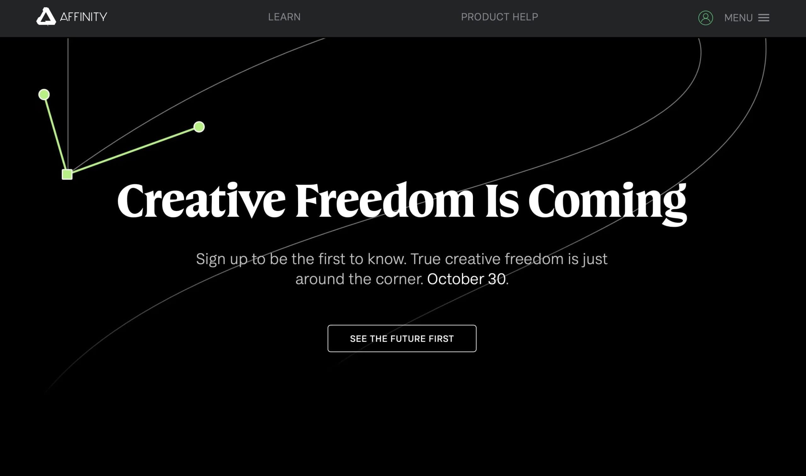 Affinitys hemsida har nu i princip tagits ned och ersatts med texten att ”Creative freedom is coming” inför den 30 oktober. Jag gissar att Cava nu tillkännager ett program som innehåller på det stora hela allt det som Affnitys program har innehållit – ett stort, samlat design- och redigeringsverktyg, för det kan vara det Cava hela tiden har siktat på.