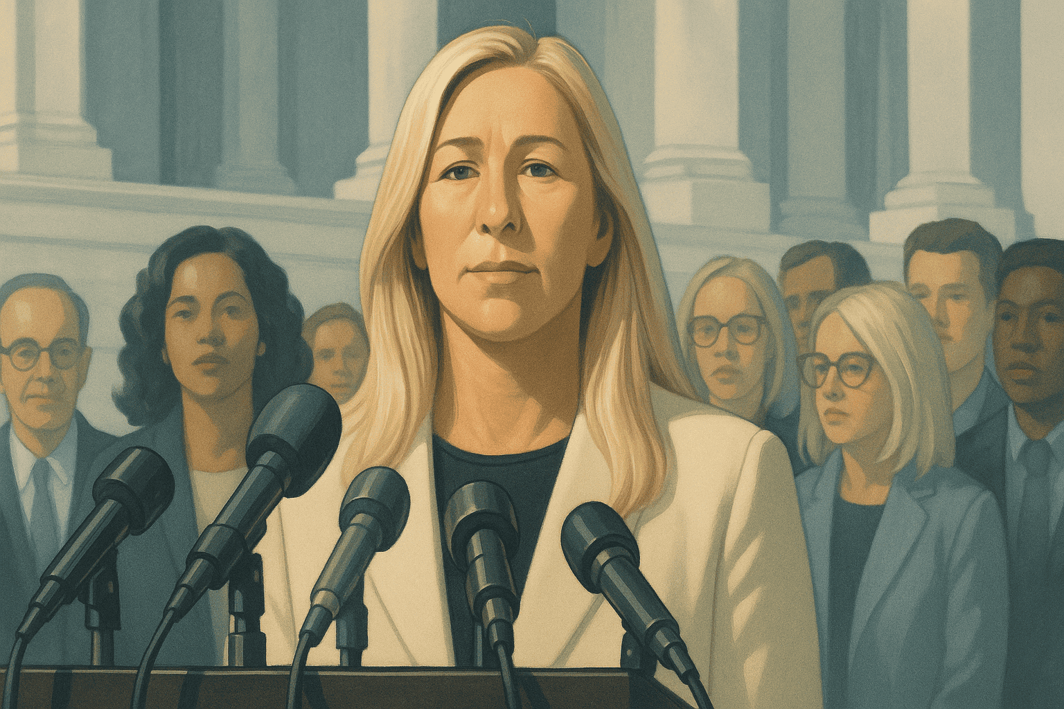 Greene antyder att ett kommande primärval mot en Trumpstödd utmanare bidragit till beslutet och säger sig inte vilja utsätta väljare och familj för en sådan process. Hennes tid i kongressen har präglats av hård retorik, konspirationsteorier och interna konflikter, och hon har tidigare blivit av med sina utskottsplatser. Greene utesluter inte att återvända till politiken i framtiden, eventuellt som oberoende kandidat.