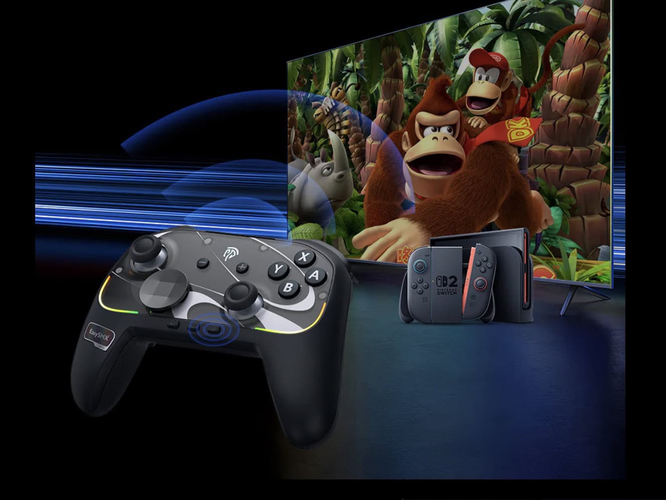EasySMX S10 är designad för Nintendo Switch och för Nintendo Switch 2 men har ett omslag (en knapp) undertill som gör att du kan använda den för PC, Android och iOS också, om du skulle vilja det.