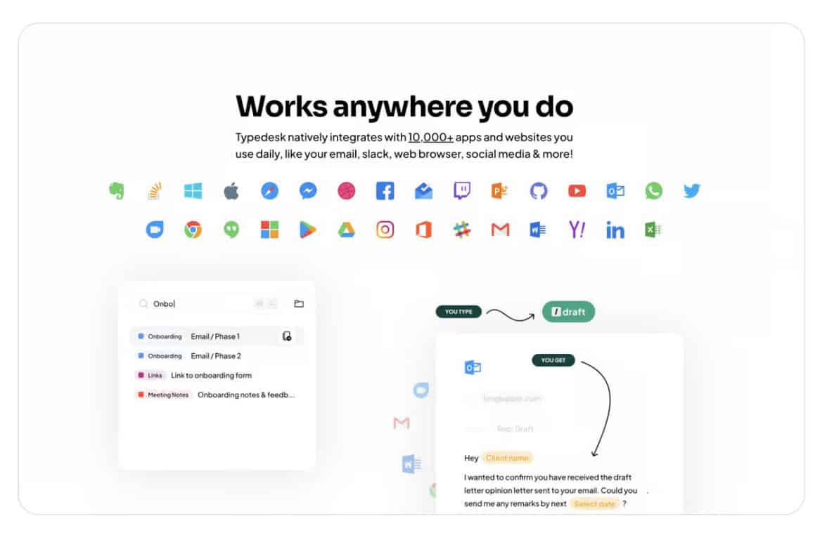 Typedesk fungerar överallt på din Mac: i mejlklienter, webbläsare, chattar och kodredigerare. Dina genvägar synkas mellan dina enheter så att du alltid är produktiv, oavsett var du befinner dig.