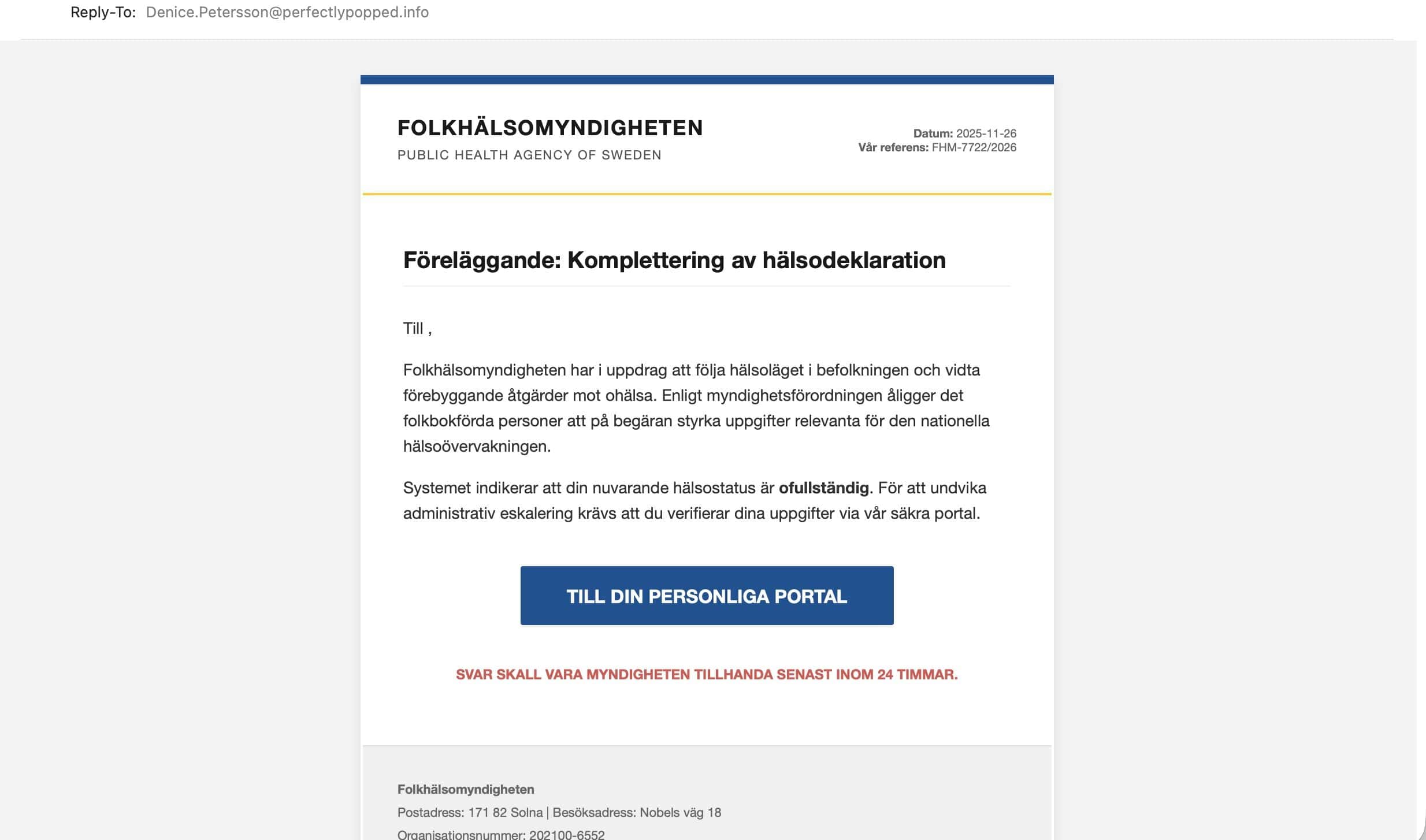 Ett liknande försök till bedrägeri men nu i mera hotfull ton.
