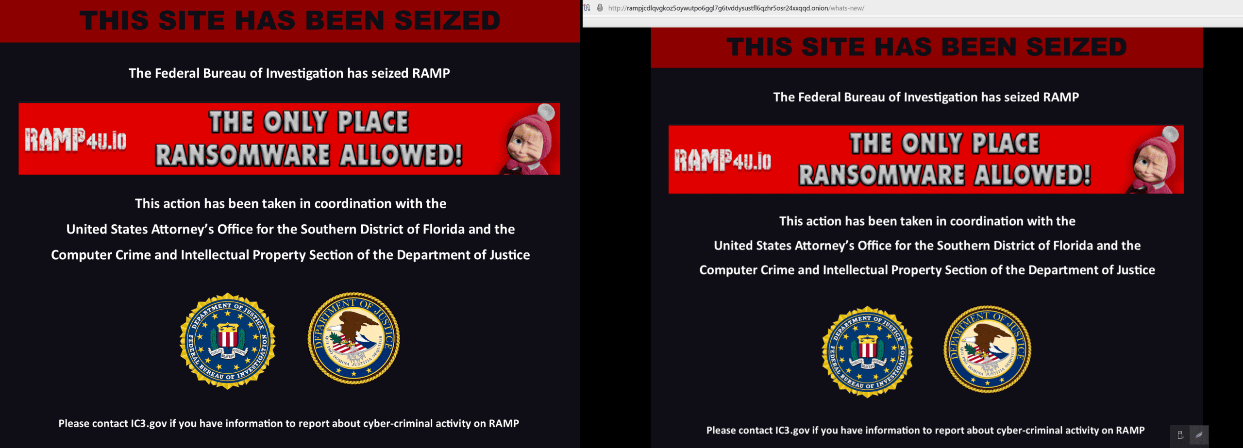 Besökare på både den öppna webben och darknet möts nu av FBI:s officiella beslagsmeddelande. Insatsen genomfördes av FBI i samarbete med justitiedepartementet och lokala åklagarmyndigheter i Florida.