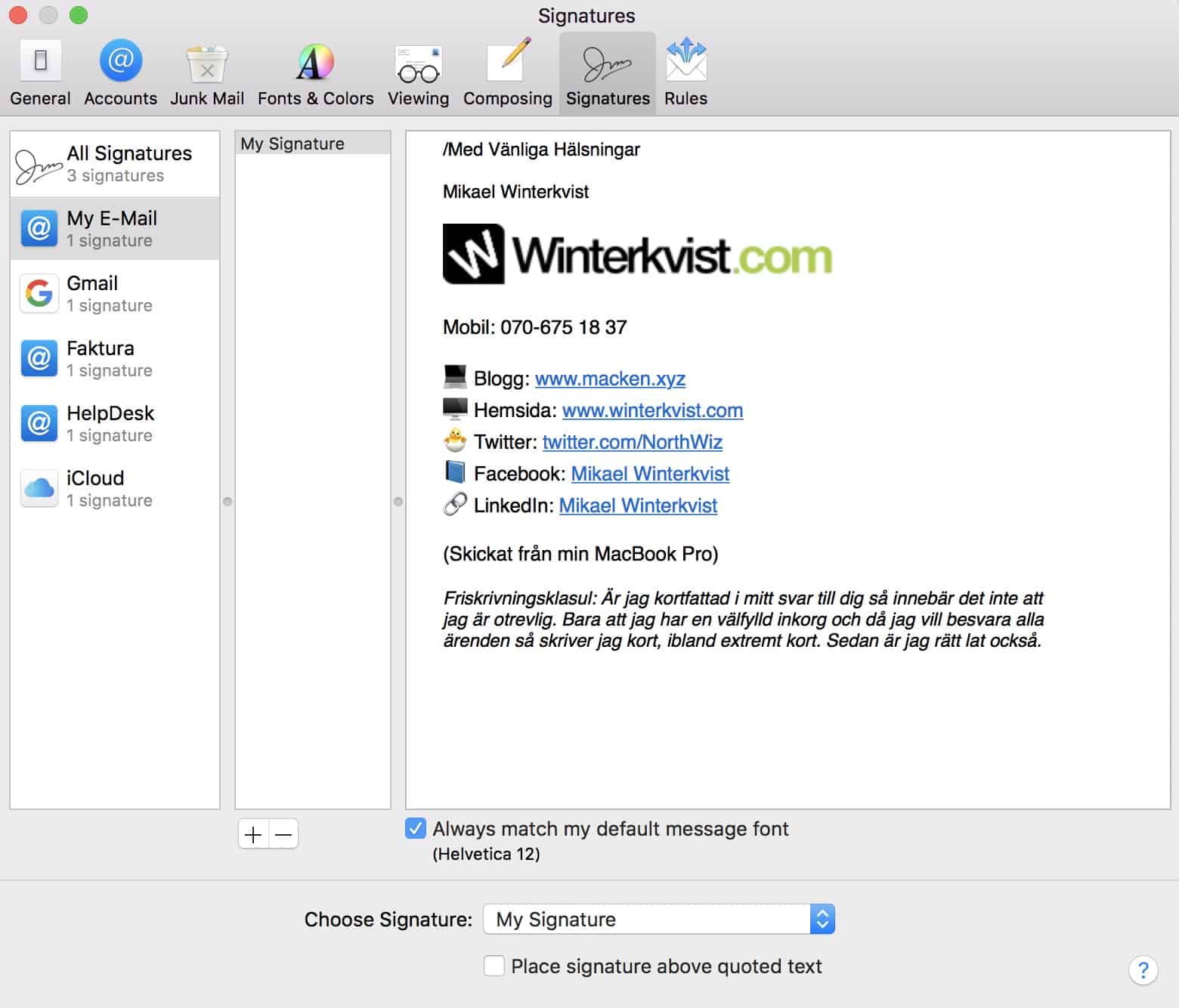 Så nu är det bara att låta fantasin flöda och bygga din egen snygga signatur i Mail.